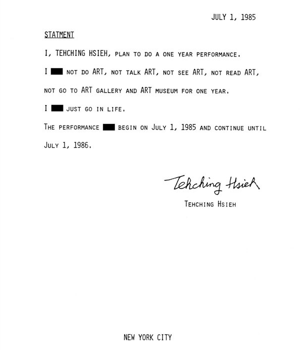 Home > Tehching Hsieh > Other Works